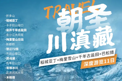 【进川.经滇.及藏】稻城亚丁.梅里雪山.南迦巴瓦.拉萨.理塘.然乌湖.米堆冰川.千年古盐田.金沙江大拐弯.怒江72拐.古乡湖.巴松措 深度游览11日