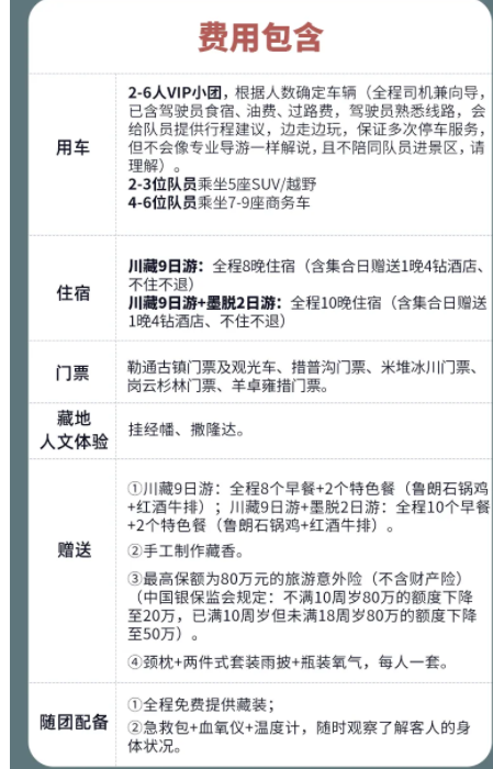 (3)特别声明:“大美川藏”因没有医疗资质,随车只提供瓶装氧气,无任何药品,请提前备足适合自己的药品。