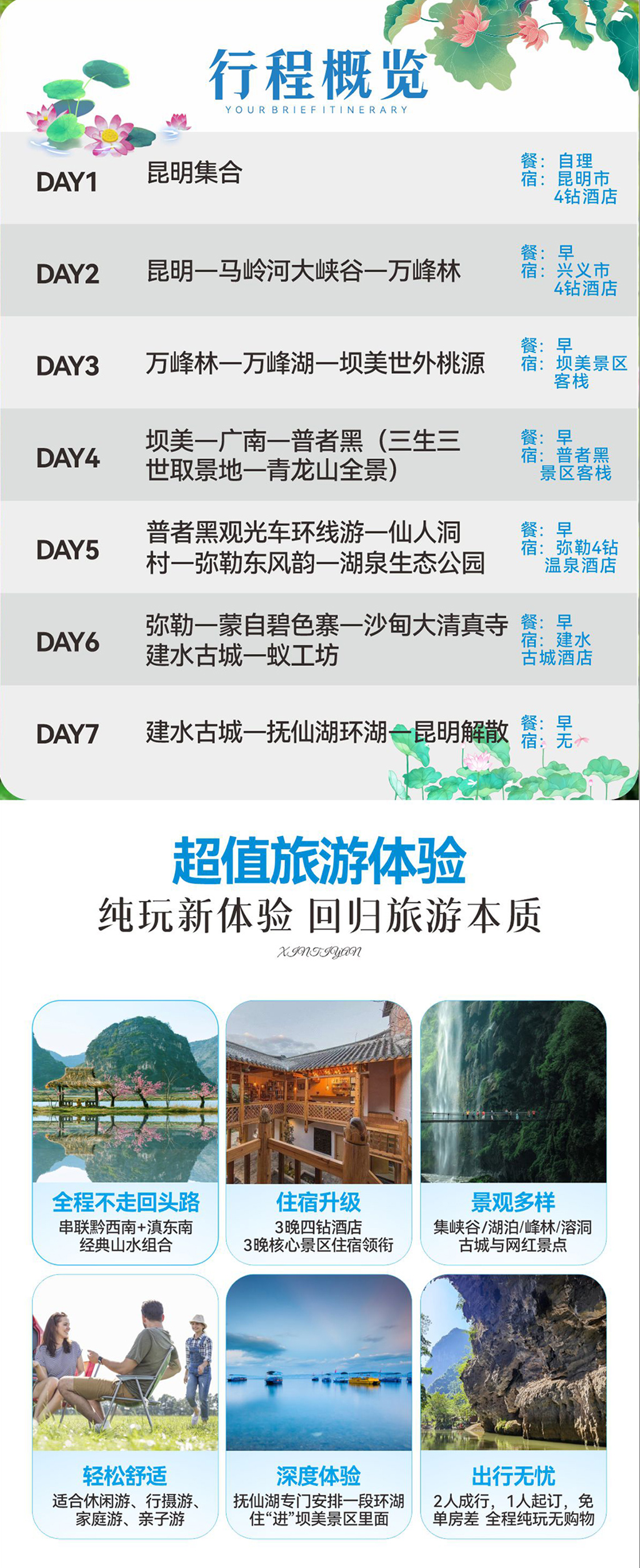 【精华组合】:全程不走回头路,串联黔西南+滇东南经典山水组合;