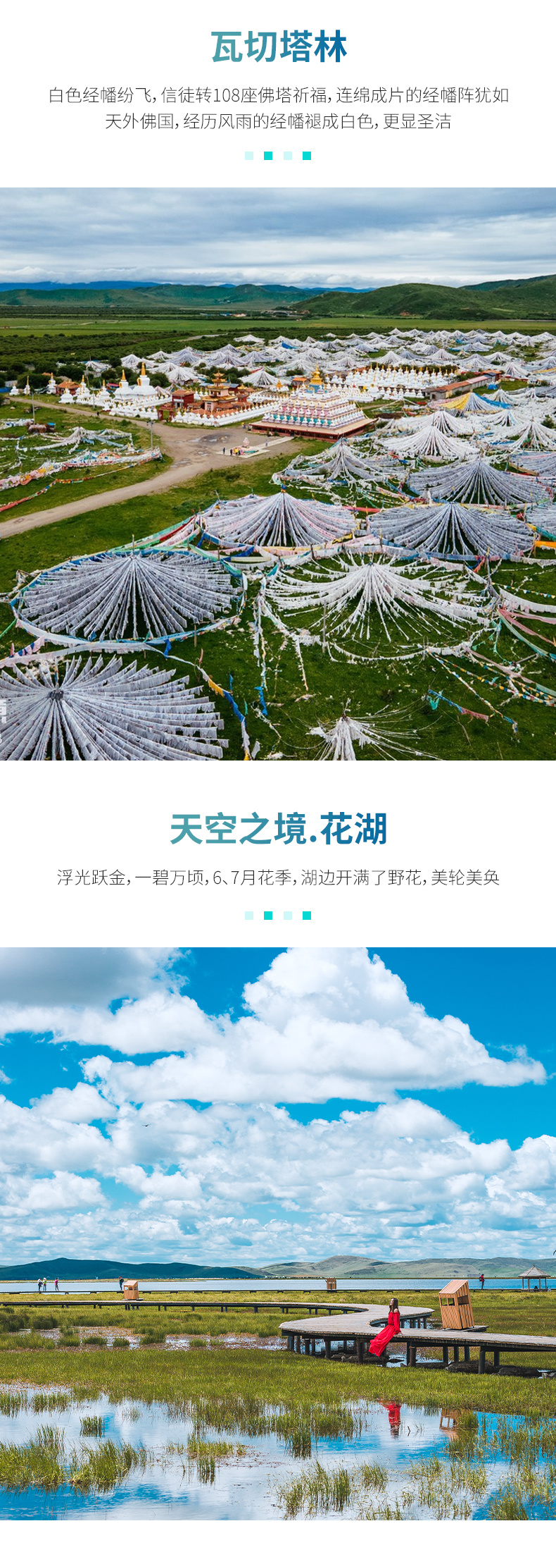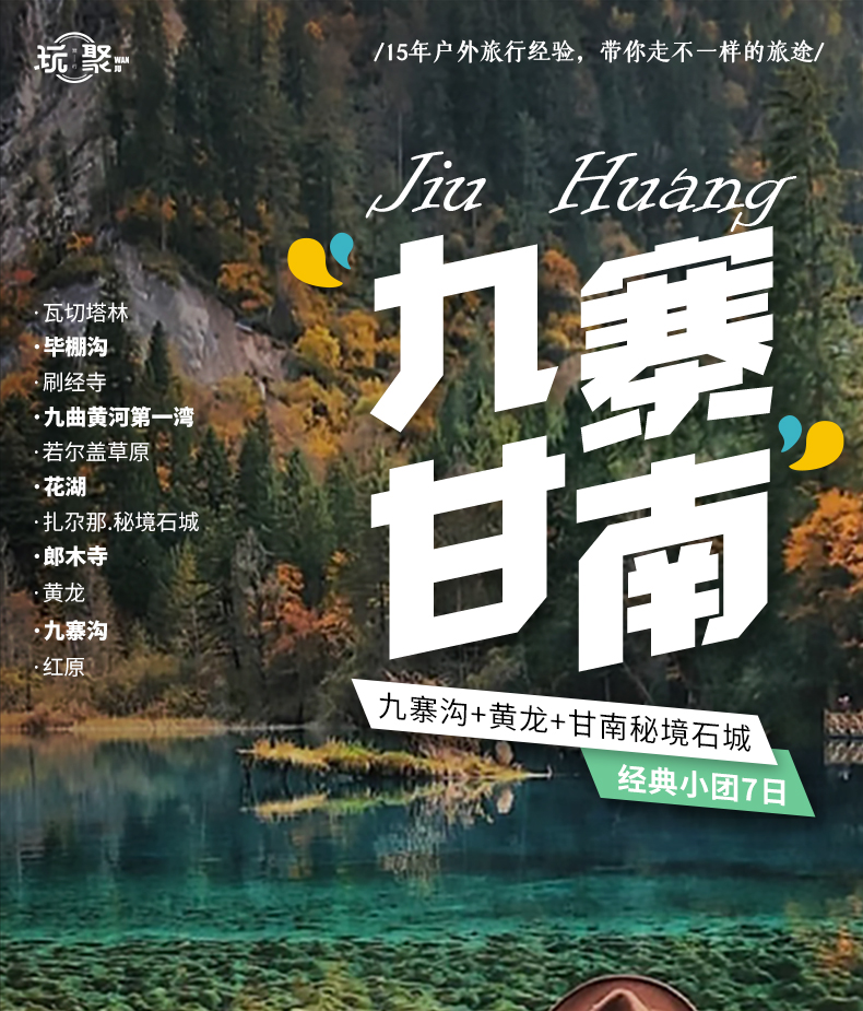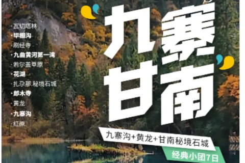 九寨沟+毕棚沟+扎尕那+花湖+九曲黄河第一湾日落+黄龙+若尔盖草原+郎木寺+红原+川主寺 圣地旅拍 2-8人小团7日