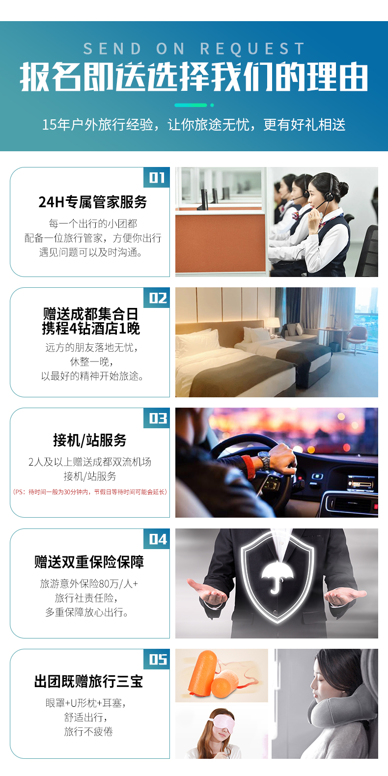 ---每周六发团可以升级户外装备.升级价格:成人3780元/人,单房差1300元/人---