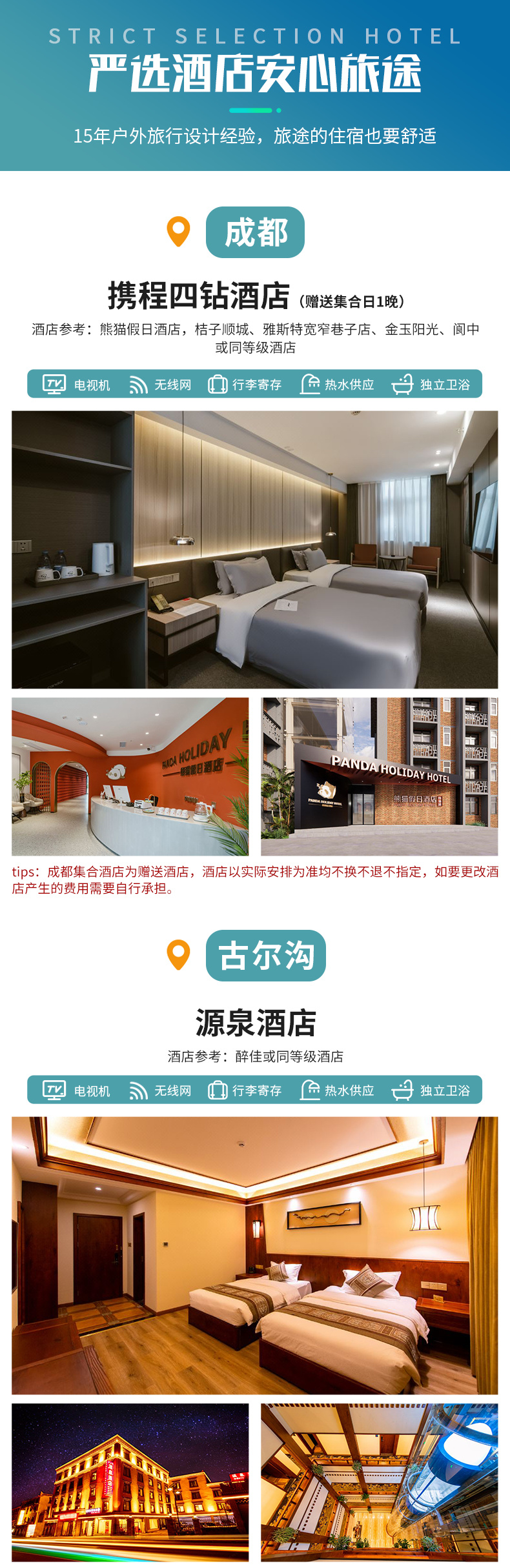 (2)如当天实际情况不允许,则会调整入住于毕棚沟温泉酒店,望您谅解。