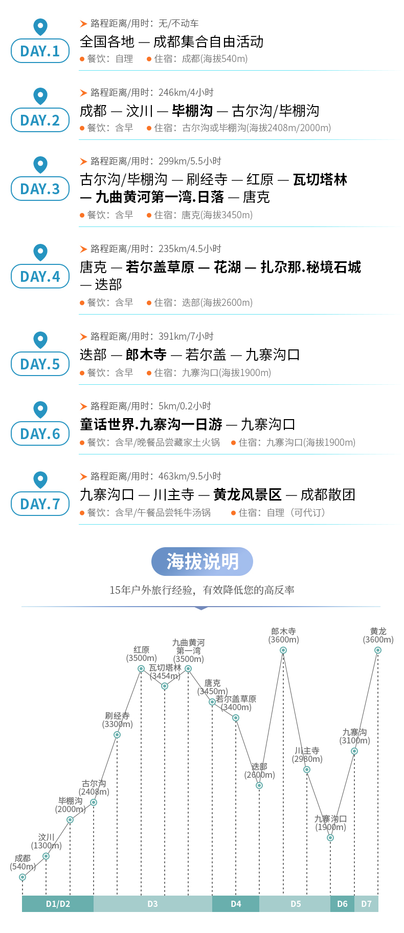海拔情况:2408m/2000m—3300m—3500m—3454m—3500m—3450m