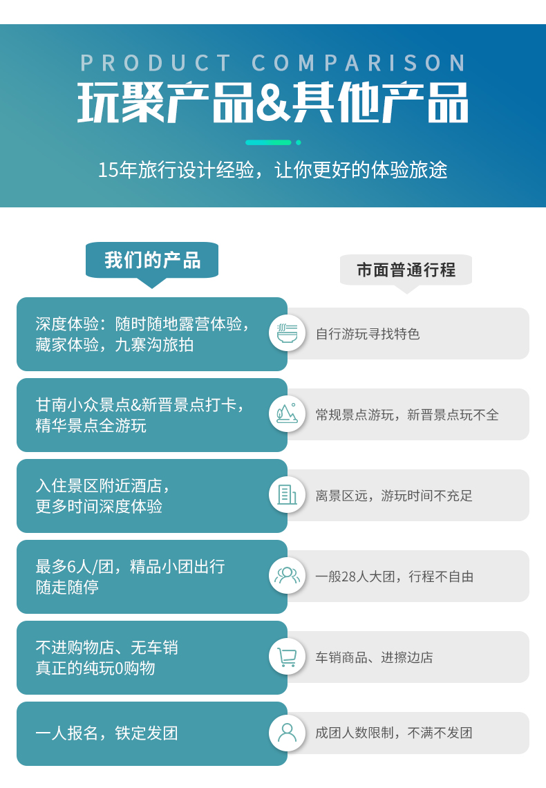 请对应使用我方九寨甘南7日自由VIP小团行程,因使用其它行程造成的投诉,责任自负;请仔细阅读以上行程文档,同意并保证遵守我方安排,以免为您带来不必要的麻烦;如产生合同纠纷或人身意外事故,按《中华人民共和国合同法》、《道路交通法》、《保险赔偿条例》裁定;本行程作为旅游合同附页与旅游合同同等法律效力。