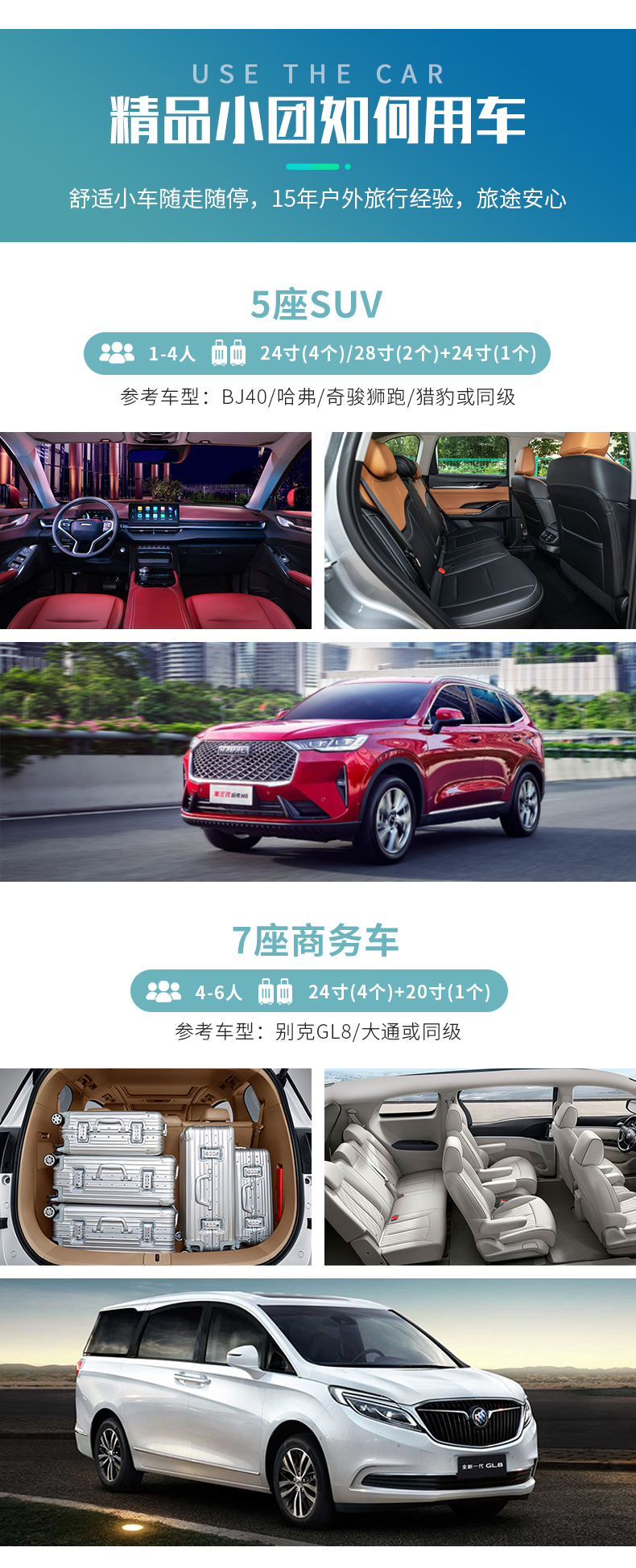 ---每周六发团可以升级户外装备.升级价格:成人3080元/人,单房差760元/人---