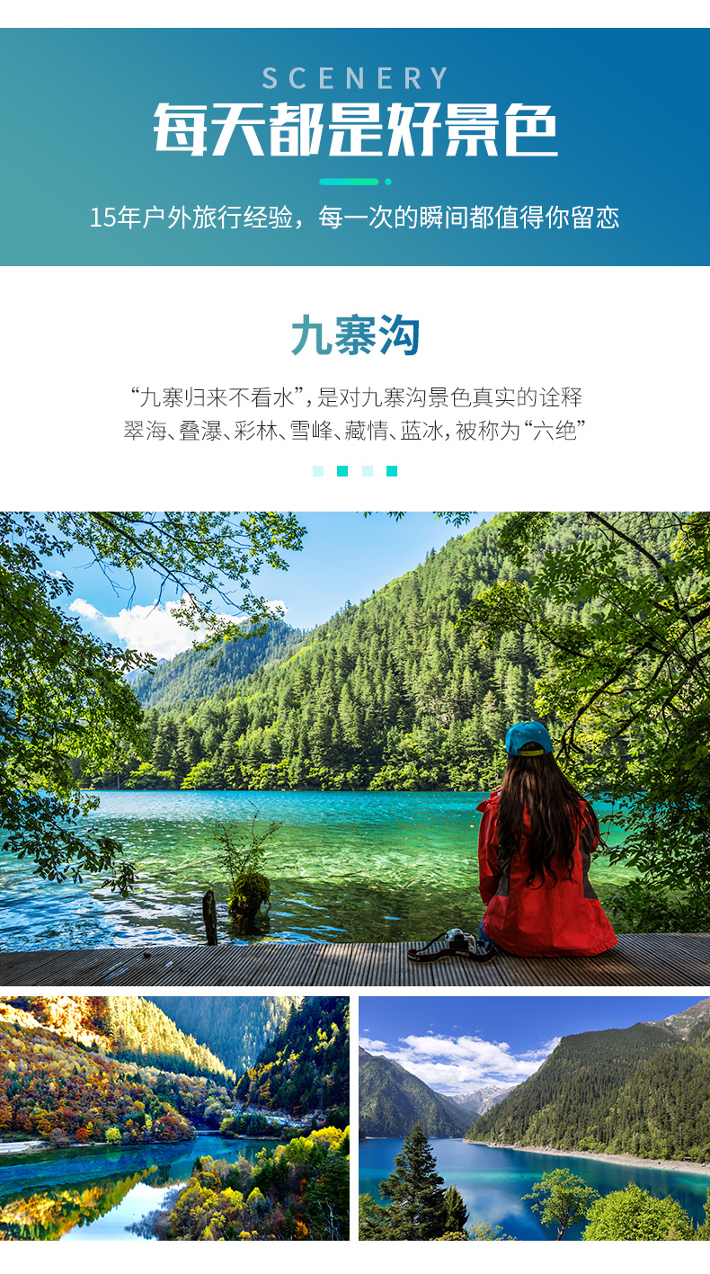 4、九寨沟景区实行分区域开放,开放区域为沟口经诺日朗瀑布至长海,扎如沟的扎如寺及日则沟的镜海;其中,长海、五彩池、镜海、诺日朗瀑布、树正群海、双龙海瀑布、扎如寺等景观原则上为步行游览区,具体游览方式请听从随车讲解员安排。