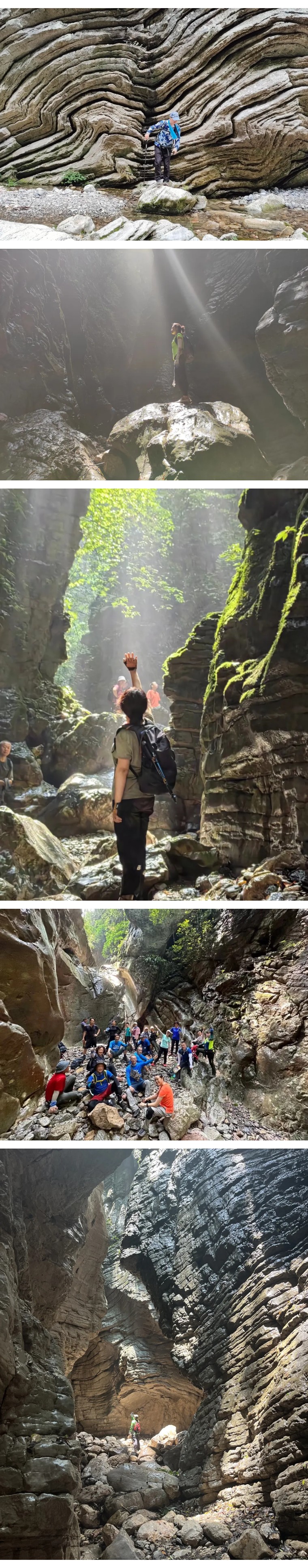 下午我们前往首车镇猪鼻山徒步,这是一个完全未被开发的地方,只有当地人才知道,我们在小路一路下行,一级一步循着古人的脚步,踏出的是轮回和岁月。接着便来到今天的徒步精华--天生双桥,行走于巨石上,脚踩亿年前的巨石褶皱,感受自然的鬼斧神工。