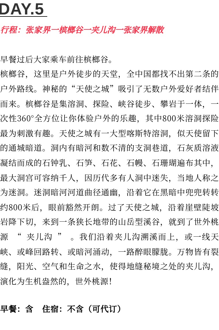 行程:张家界一槟榔谷一夹儿沟一张家界解散