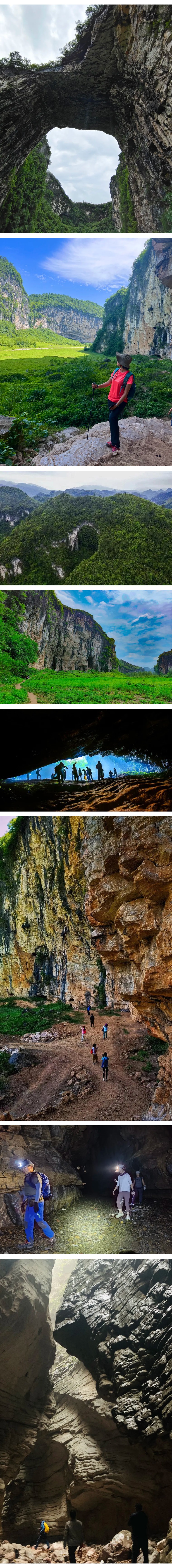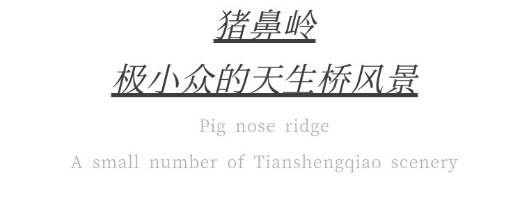 湘西的世外桃源,完全未开发的徒步路线,临近之前的一路上还是一片平常的小山村,向下望去时赫然出现一道雄伟的天生桥地貌,与地面落差极高。当地人只称作天生桥。因其两边各有一明洞,桥下还暗藏一个黑洞,由上往下的角度俯瞰极像猪鼻,于是命名“”猪鼻岭“。