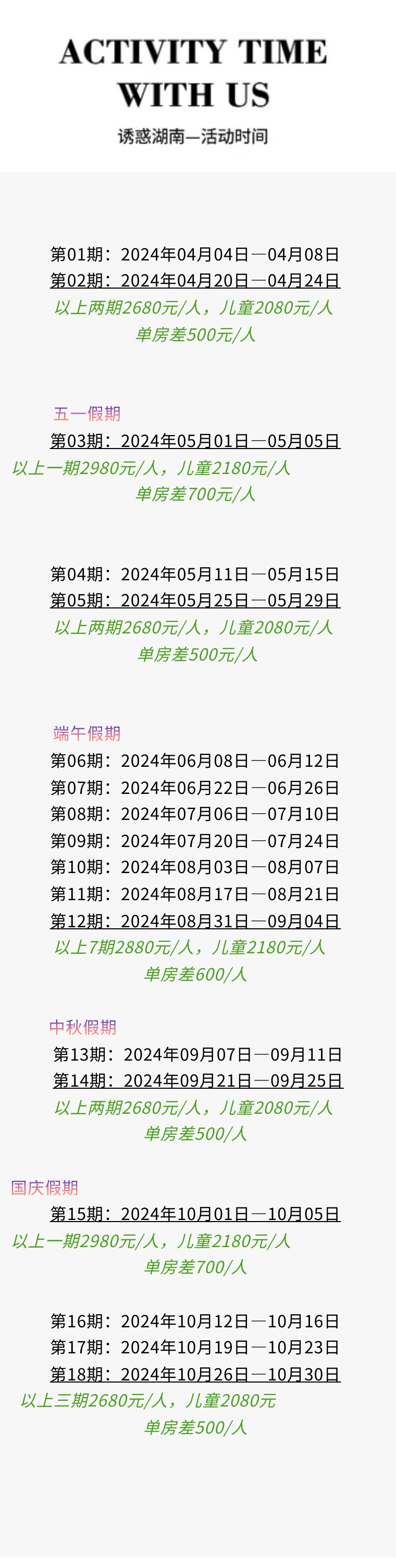 出行时间可选 | 五天四晚 | 湖南长沙集合