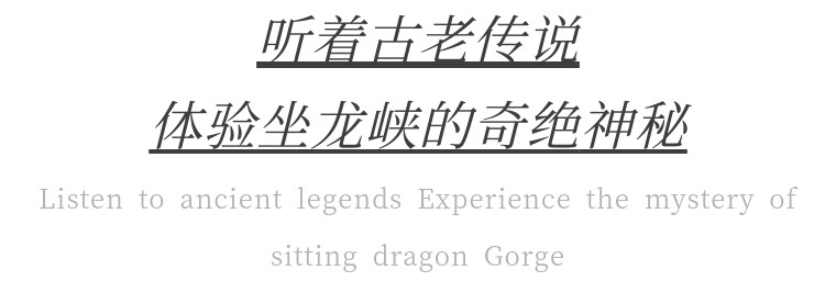 远古,青、白二龙盘踞断龙山和睦相处,恩爱有加。山乡岁岁风调雨顺,五谷丰登,土家百姓,安居乐业。皇帝听信谗言,恐二龙日久相争倾覆社稷,危及江山。乃指派高僧统官兵,用浸血铜钉,钉死二龙。青龙遇难,白龙闻风而逃,沿广塘河出亮溪,入酉水。无奈酉水被官兵铁链锁江,渔网封流。值白龙无路可逃之际,忽眼前一亮,一条峡谷险峻,林木幽深。遂藏匿其间,日浅夜出,造福乡梓。此峡遂得坐龙峡美名……《坐龙石记》。这是一段关于坐龙峡的神话传说。山不在高,有仙则名。水不在深,有龙则灵。这峡的险拔奇绝,行走其间仿佛真有龙聚之气。
