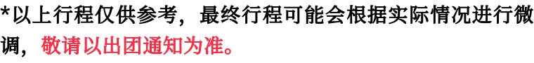 *以上行程仅供参考,最终行程可能会根据实际情况进行微调,敬请以出团通知为准。