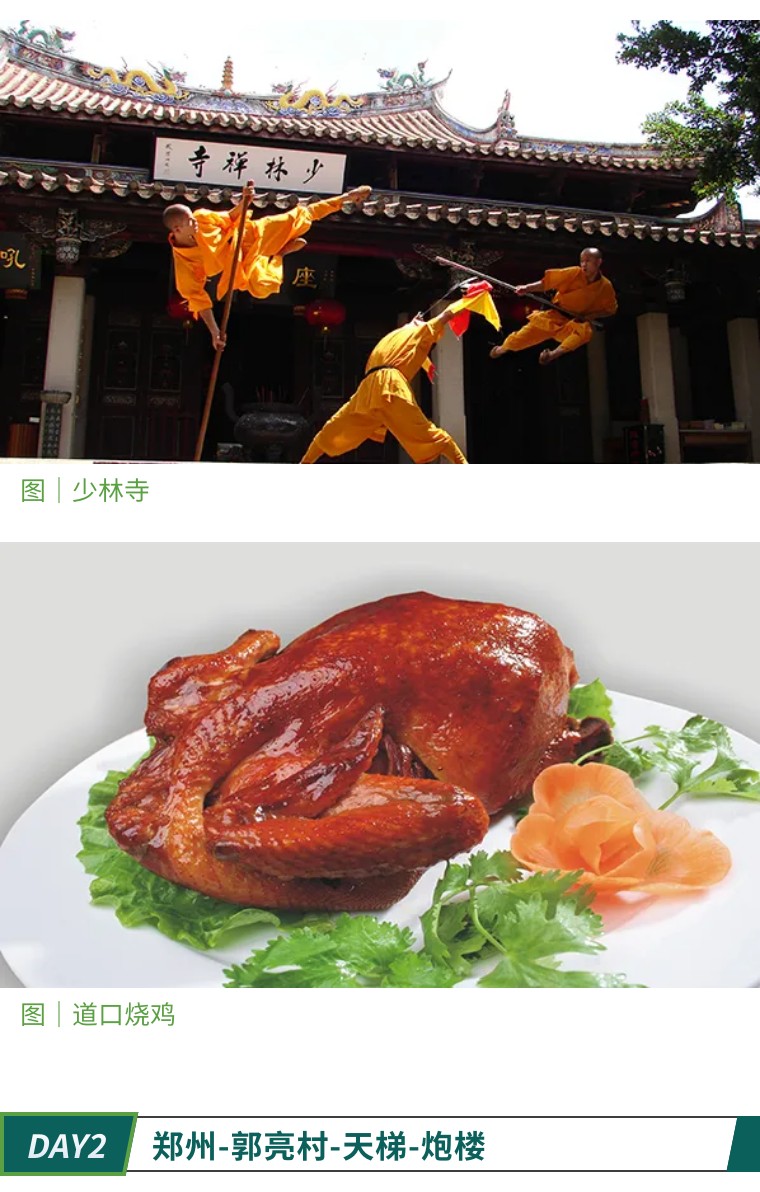 全国各地的小伙伴们到达郑州集合。到的早的亲们可以到【河南省博物院】去看看人类文明的起源发展,也可以到【黄河风景名胜区】去,感受母亲河的大河文化,还可以到【少林寺】去,学习一招半式的少林功夫……一定记要品尝河南特色美食哦,河南烩面、道口烧鸡、胡辣汤……