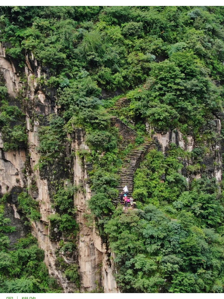 午餐后,穿行在绝壁之上的丛林之中,茂密的树林偶尔打开,瞬间感受到行在云端的感觉。看着悬崖绝壁上的下行小梯,不禁感慨,如此绝壁上竟有这样一条小路,妙哉妙哉!之后抵达【八里沟景区】,入住景区内宾馆。