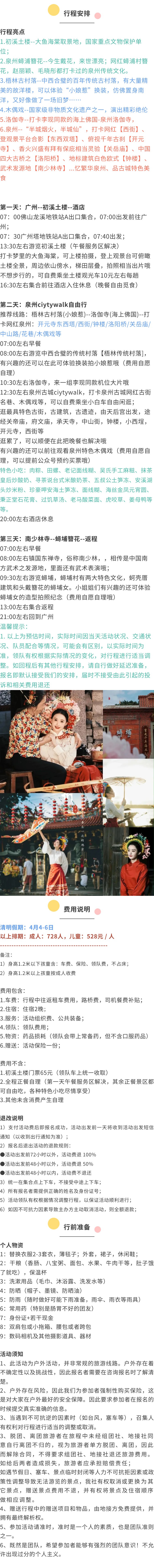 推荐线路:梧林古村落(小娘惹)--洛伽寺(海上佛国)--打卡网红泉州:开元寺东西塔/西街/钟楼/洛阳桥/关岳庙/中山路/花巷/木偶戏等