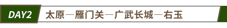 早餐后,前往被誉为“中华第一关”的【雁门关】,雁门关素有“天下九塞,雁门为首”之说,可见其卓越的战略地位。也因此,雁门关自古便是兵家必争之地。数不尽的无名将士将热血抛撒在这片土地上,一代良将李牧、卫青、霍去病、薛仁贵、杨业等都在曾在这里留下足迹。杨家将镇守雁门,忠君报国的故事,更也是广为流传。