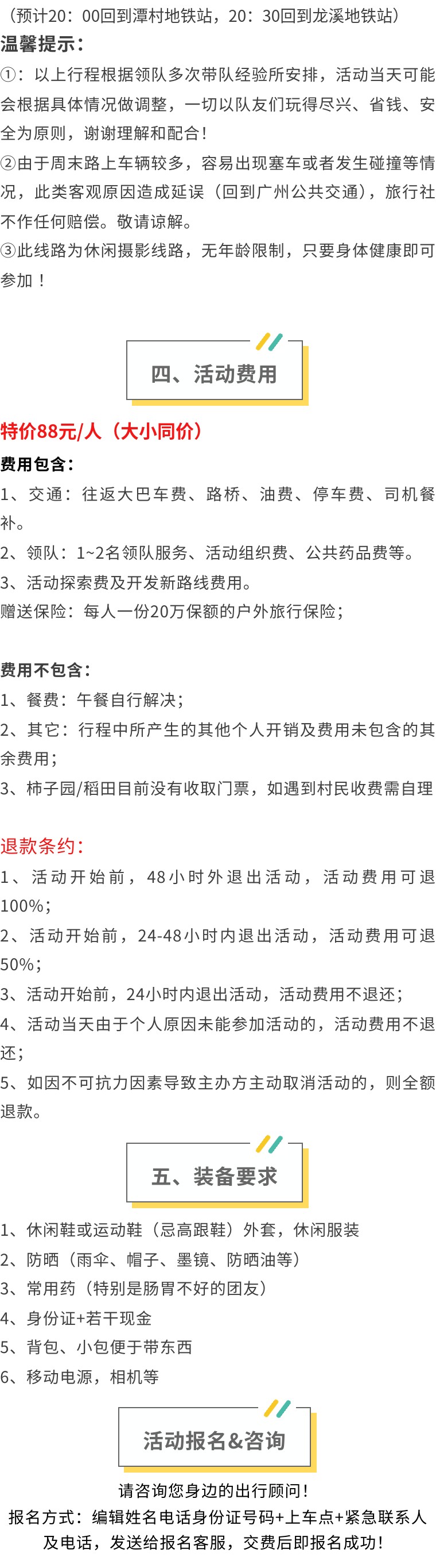 集合点2:广州天河区5号线潭村地铁站A口,7:40集合,8:00出发;