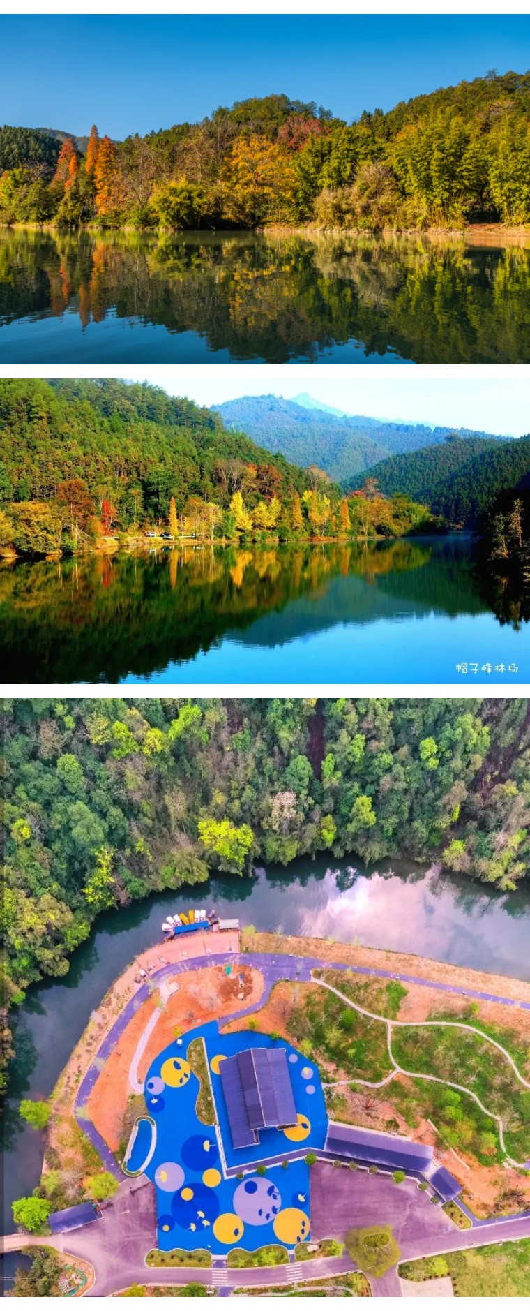 韶关南雄帽子峰景区位于广东帽子峰森林公园,帽子峰总面积为2924.6公顷,属低山丘陵,园内有约700多亩银杏、水杉成熟林,天然更新呈块状、点状分布的枫香林等彩叶树种,叶色由绿变黄、由绿变红,与碧波溪流相映成趣,构成一幅亮丽多彩的“黄杏红枫图”。