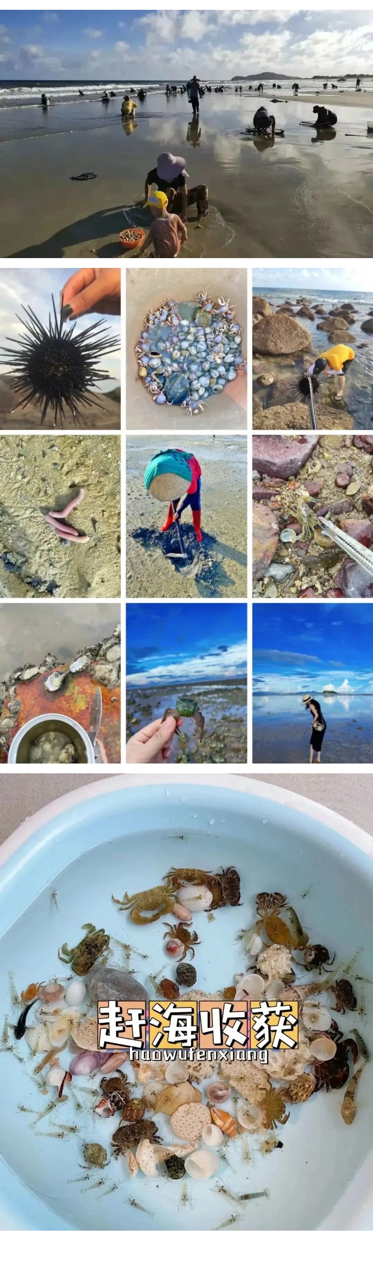 (随手就能捉到螃蟹、白贝、海螺、生蚝,最重要可以看到成群结队的沙蟹”横行霸道”,还可以浮潜捉海胆哦)