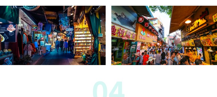南洋骑楼建筑、流光溢彩的LED夜景、琳琅满目的各色闽台特色小吃和回响在小巷街坊间的古老南音,构成其与众不同的风格特色。
