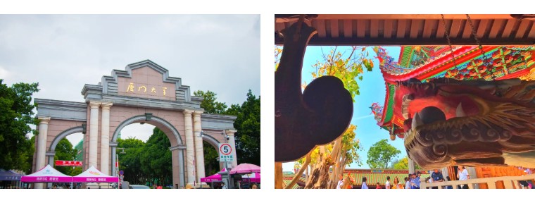 09:30 先到【厦门大学】西门进行外观合影,随后开启CityWalk。游览“千年古刹”【南普陀寺】,漫步至【顶澳仔猫街】,里面都是关于猫咪的东西和店铺,还有猫咪博物馆。继续漫步至【沙坡尾】,途中经过【厦门世茂双子塔】。打卡沙坡尾网红店铺,不仅有原汁原味的老厦门海港街道,还有时尚的清新文艺小店,同时有不同风格的场景:美式风,涂鸦墙,彩虹地标,真是绝佳拍照地