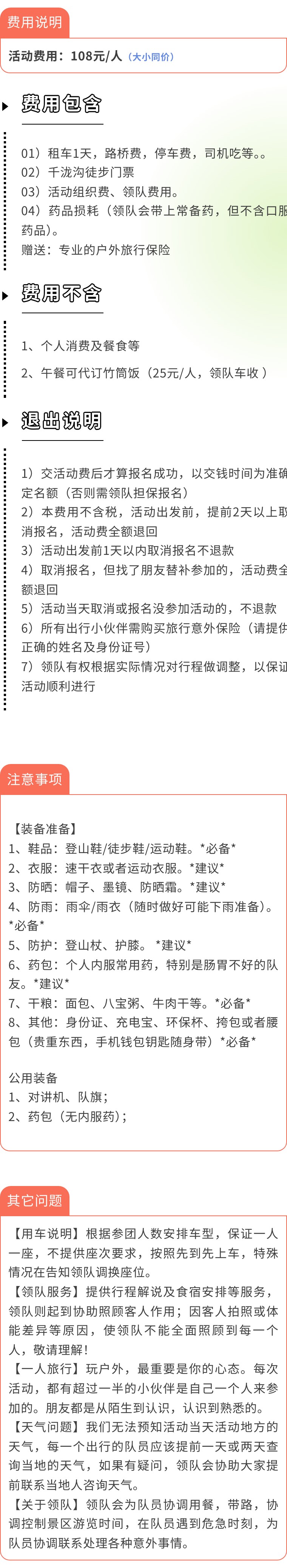 2)本费用不含税,活动出发前,提前2天以上取消报名,活动费全额退回