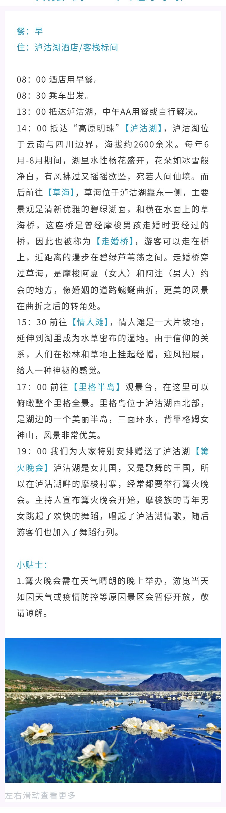丽江-泸沽湖全景-草海-走婚桥-情人滩-里格半岛-篝火晚会(约230KM,车程约4小时)