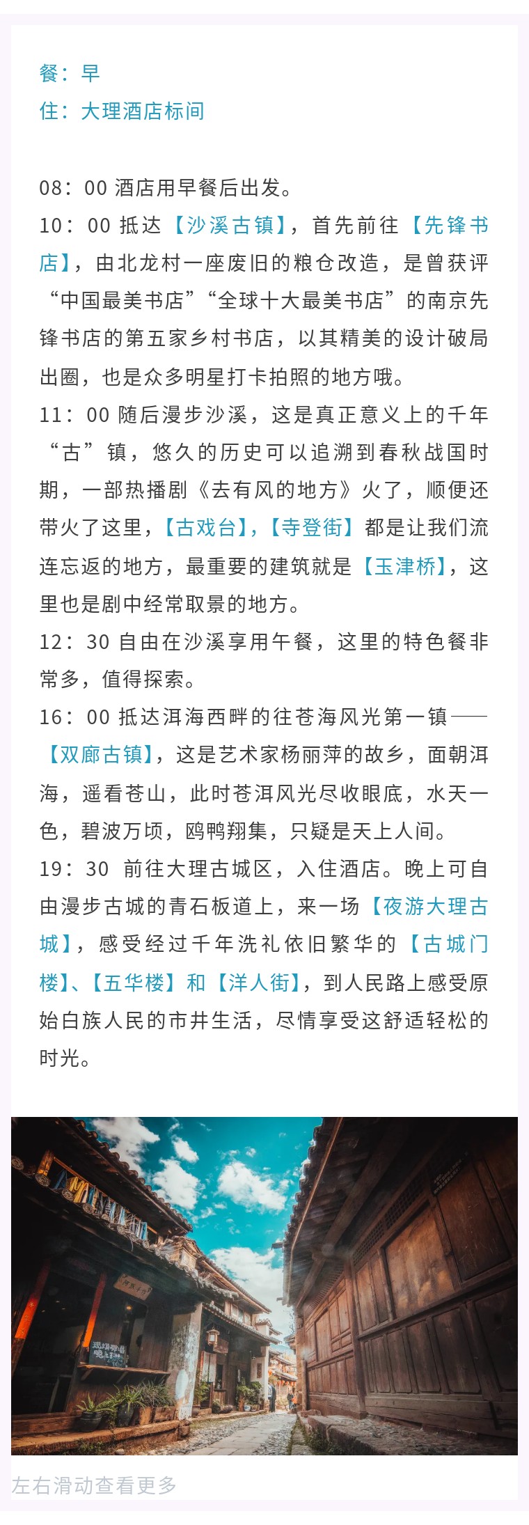 丽江-沙溪-先锋书店-寺登街-玉津桥-双廊洱海-夜游大理古城(约230KM,车程约3小时)