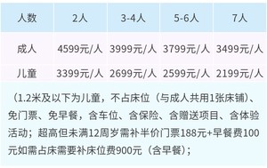成人3999元/人,儿童2299元/人