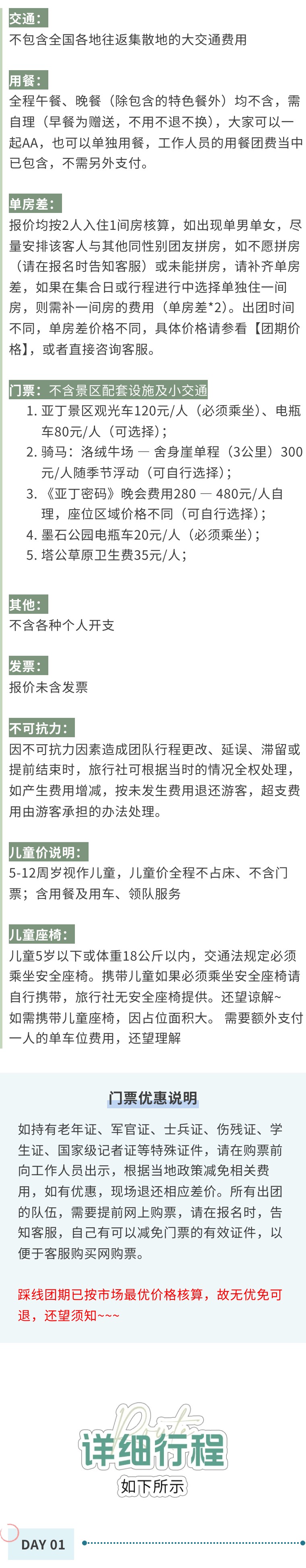 (2)如患有抑郁症或精神病类等疾病的游客,不允许参加此团。如报名时不说明自身病情,出现任何后果游客自行承担,与报名旅行社无关~