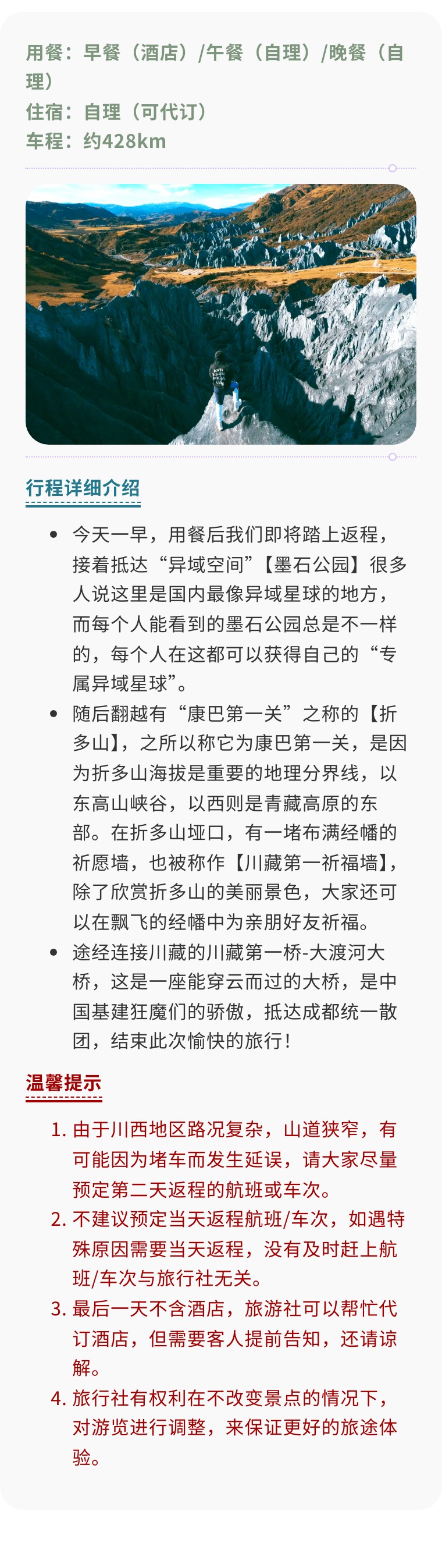 (3)本线路没有“代购业务”,请不要在团队中或者完团后,请求驾驶员代购任何产品,如有需要请自行筛选、购买。