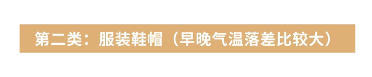 (2)戈壁沙漠服装:6-10月份以夏装为主,T恤,皮肤衣,薄外套为主;