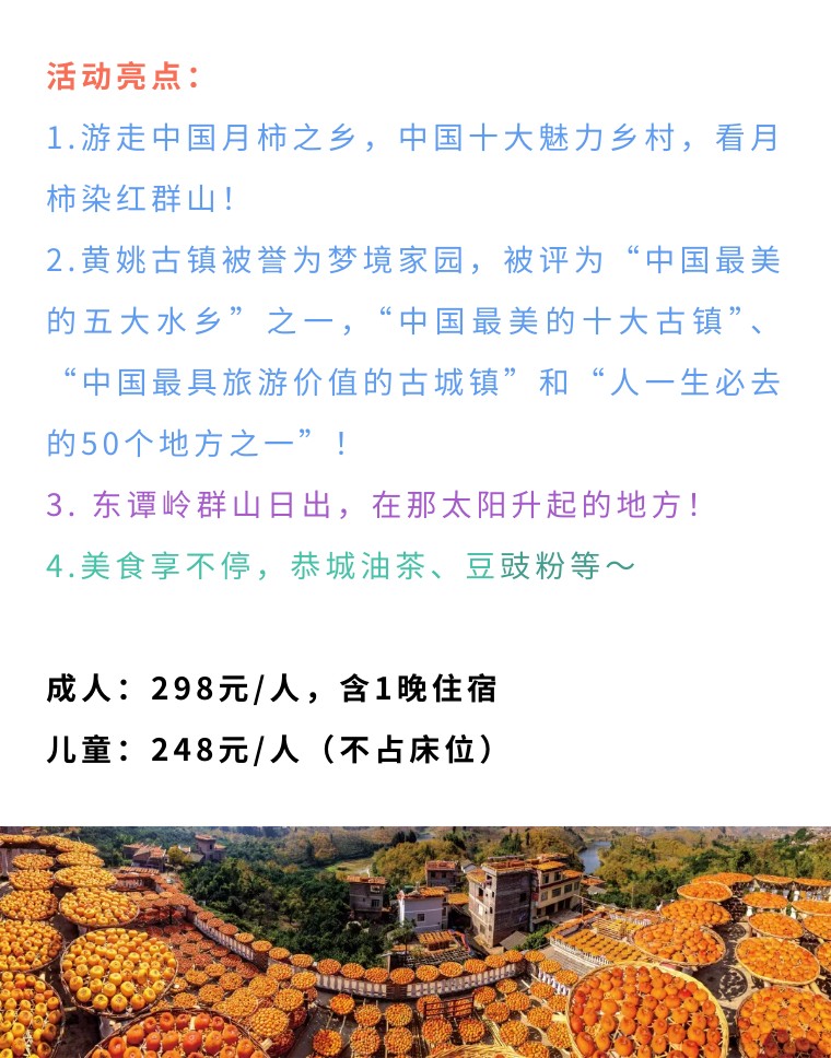 2天-每周三/周六出发特价298【恭城月柿】柿子红了,一起行摄恭城红岩村、黄姚古镇,感受广西的秋色! [复制链接]