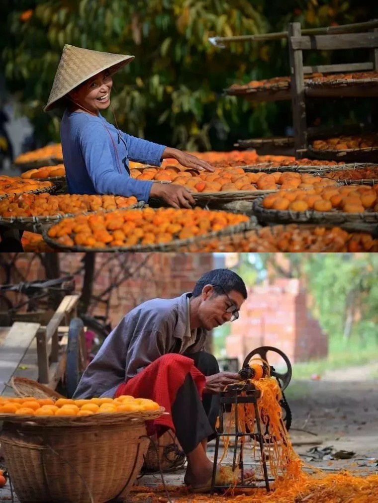 捣鼓着手中的机器,剥出柿子皮晒干成柿子饼