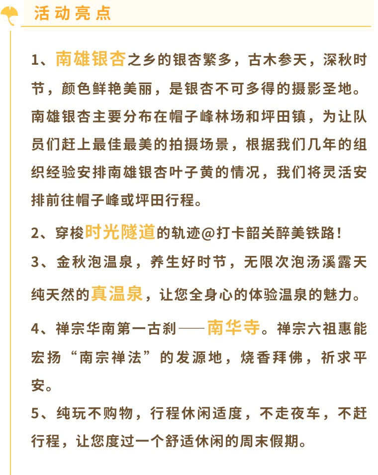07:30 集合出发前往南雄银杏之乡,约2小时左右车程(车上好好休息一会);