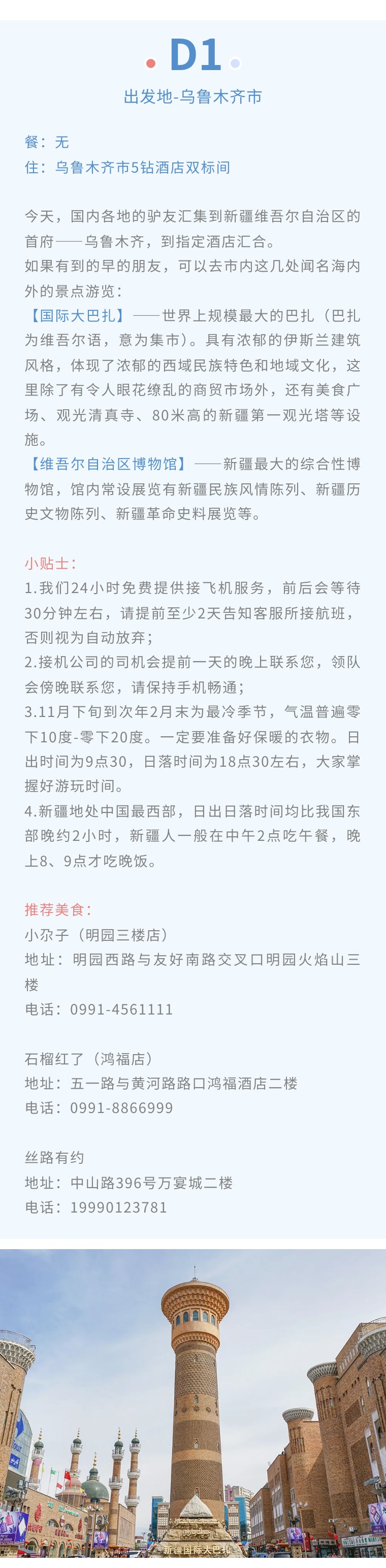 第01期:乌鲁木齐集合时间2025-11-15号——乌鲁木齐结束时间2025-11-21号
