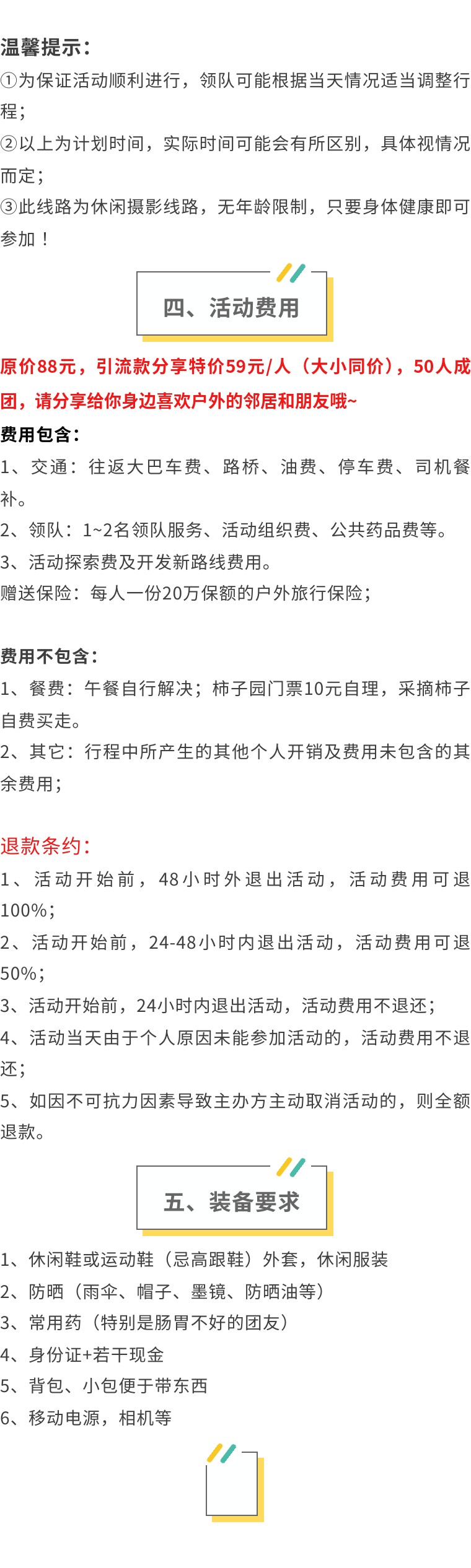原价88元,引流款分享特价59元/人(大小同价),50人成团,请分享给你身边喜欢户外的邻居和朋友哦~