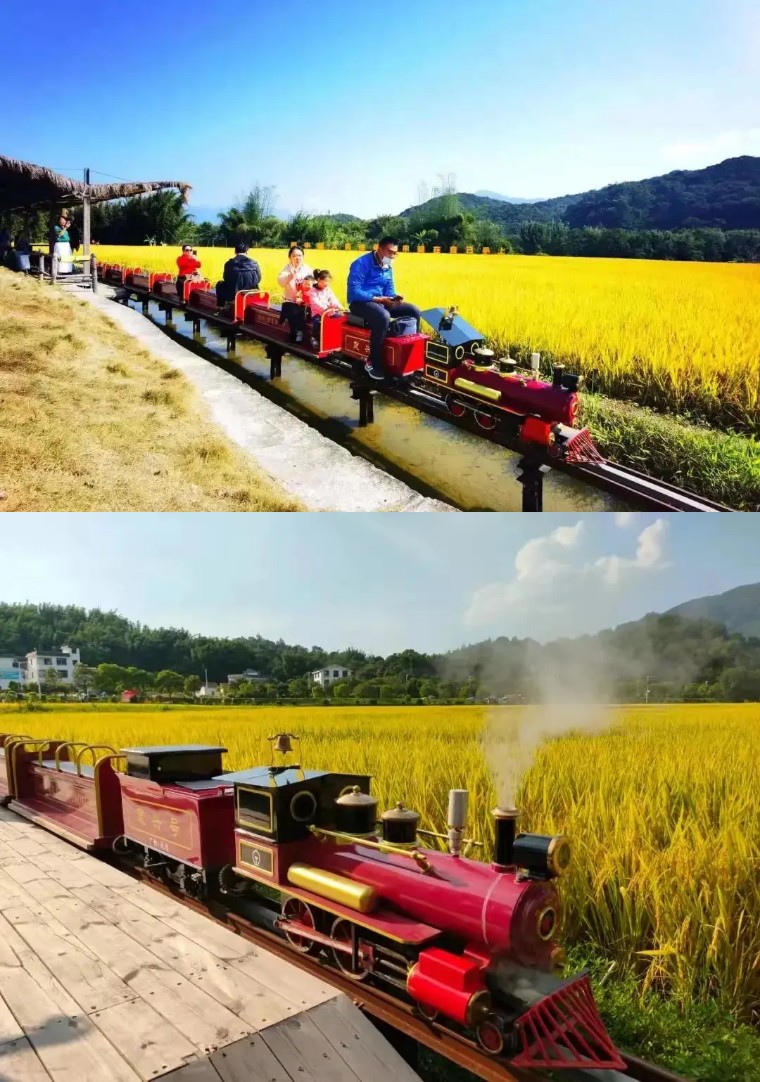 9:50 左右到达【从化米埗小镇】,欣赏金黄的稻田,穿梭其中的小火车,风拂过稻田,沙沙作响,静静的坐在傍边,仿佛自己就是宫崎骏电影里那些追梦闪光的人;