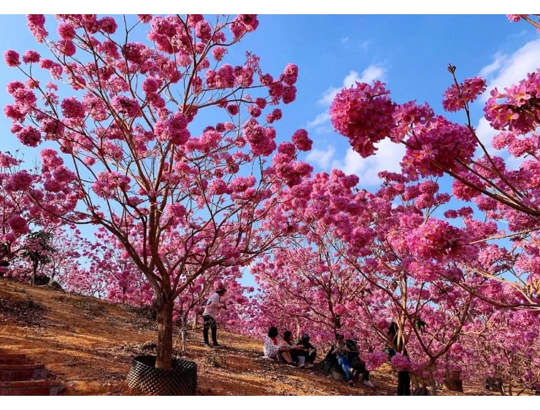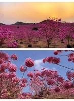 13:45-17:00 游览拍摄【紫花风铃木】,34万平方米的紫花风铃,满树铃铛、姹紫千红的紫花风铃盛开,构成一幅美如童话的仙境,会让你深深的感到震撼!摄影家的天堂!