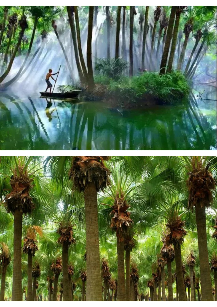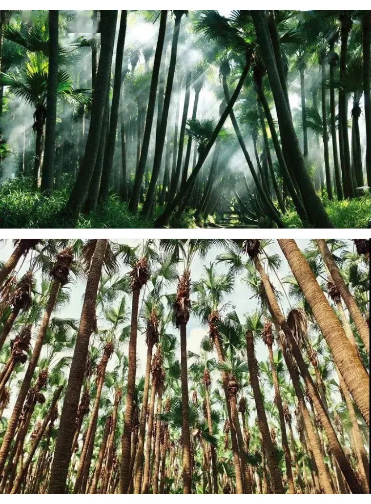 2、新会千亩蒲葵林,国内最大葵园,拥有上百年历史的葵树林,错落密布;