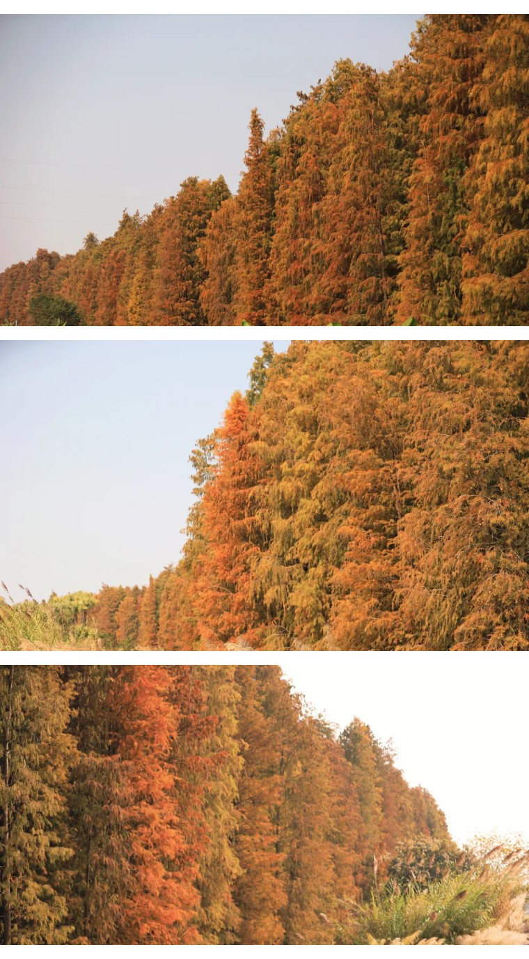 千亩葵林旁,种植成片的落羽杉,正值观赏期(下图往年实拍哦)