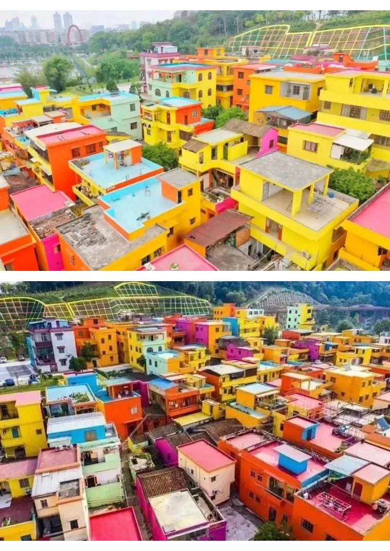 3、江门彩虹村,抖音爆款景点,犹如五颜六色的童话王国;