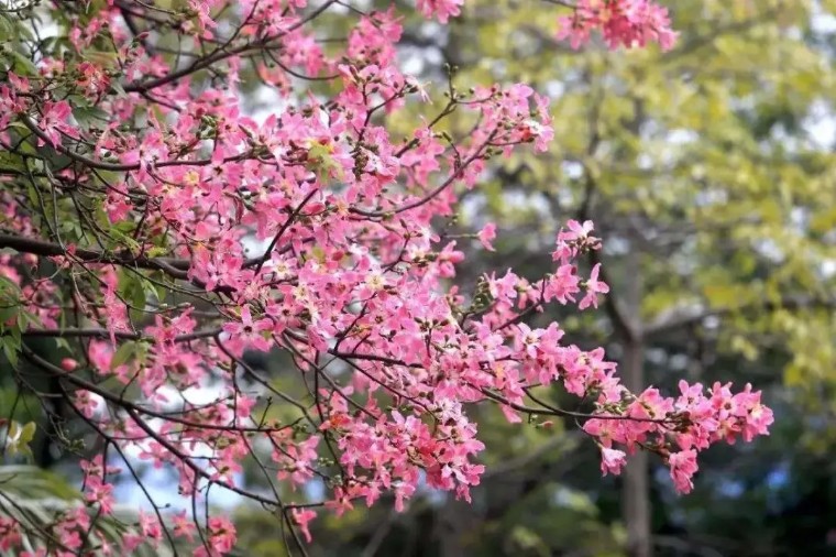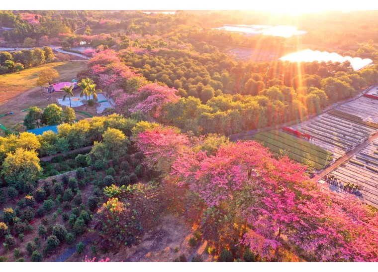 还种植了紫花风铃,以及3万株茶花艳压枝头,醉蝶花铺就七彩花毯,美丽异木棉如云似霞,色彩顺着花田绵延至远山,将“阳光裹着花香”的诗意场景具象呈现。