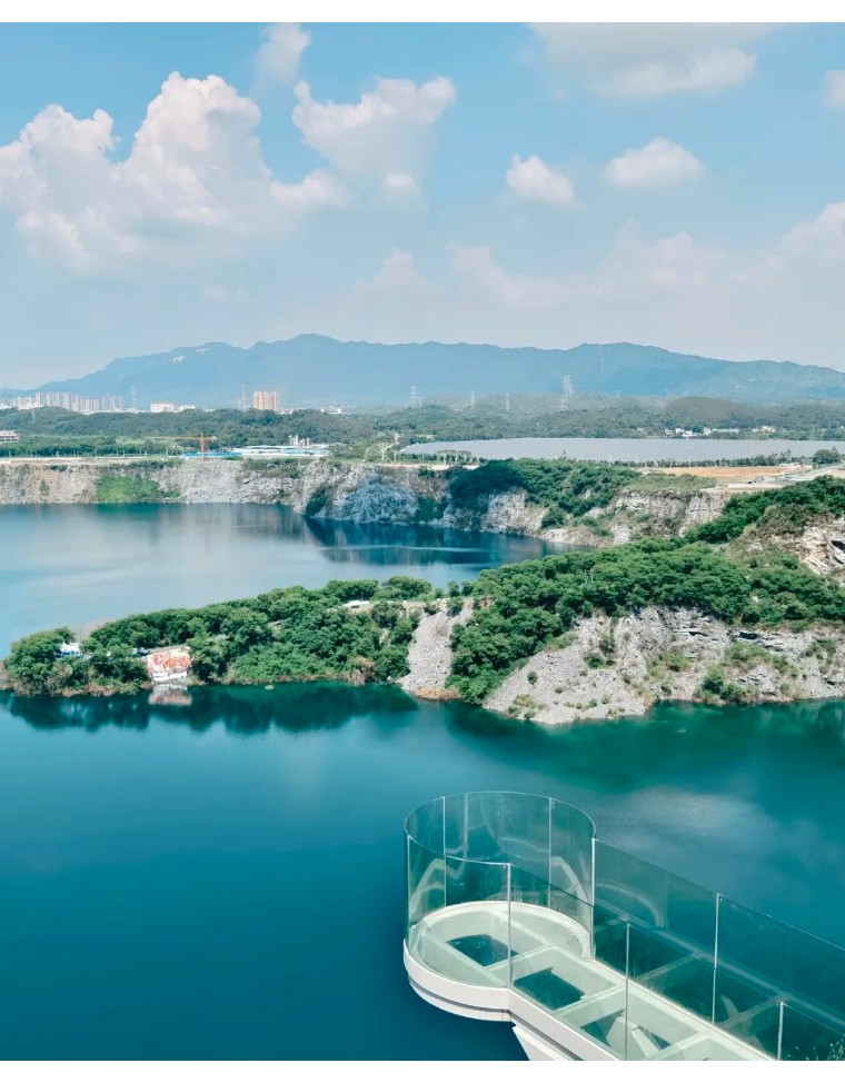 广东居然还有个这么小众又好看的地方!被青山绿水环绕~湖水蓝得像宝石,旧矿山改造的咖啡馆也太有感觉了,工业风+自然景完美碰撞!阳光洒在湖面上,湖水蓝得像巨大的蓝宝石,波光粼粼。