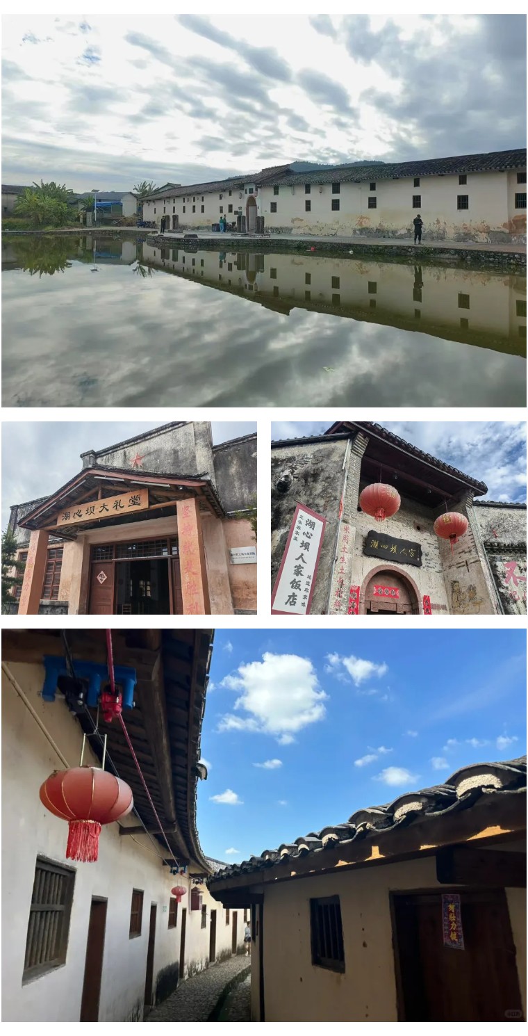 12:45 到达【湖心坝】老沈家家庭农场的前身为古代学堂,可以AA约伴午餐。吃饱之后,参观湖心坝550多年明清围楼,被称之为粤北客家第一村,集古、奇、朴、幽于一体,千姿百态