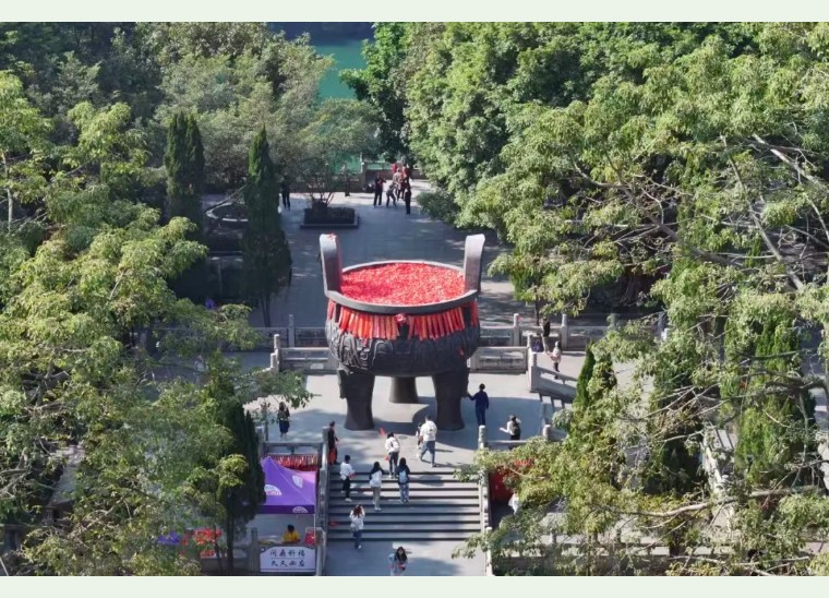 漫步其中,便能感受 “天然大氧吧” 的治愈力,庆云环翠、龙潭飞瀑、双虹飞堑等景点更添登山乐趣,宝鼎园内的 “九龙宝鼎” 作为上海大世界基尼斯之最,湖山鼎势相得益彰,值得打卡。