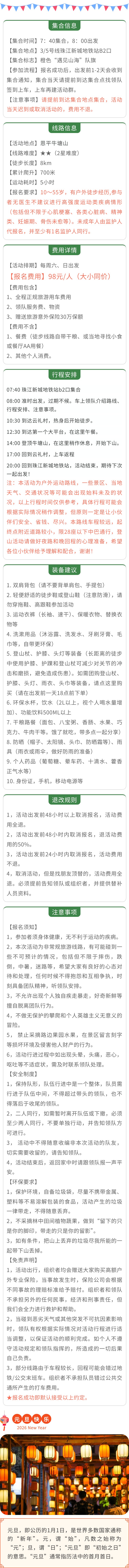 【参加流程】报名成功后,出发前1-2天会收到集合通知,集合当天请提前到达集合点找领队签到上车,上车再建活动群。