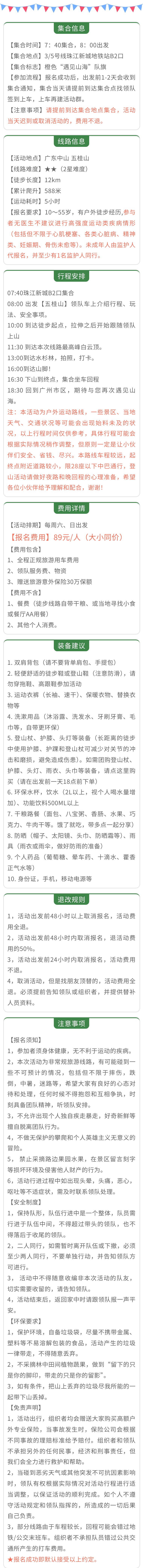 08:00 出发【五桂山】领队车上介绍行程、玩法、安全事项。
