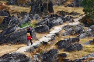 10:30 到达徒步起点热身,开始徒步走环线(全程大约8公里)。梅子坪古道主要部分都隐藏在人迹罕至的喀斯特群山中;