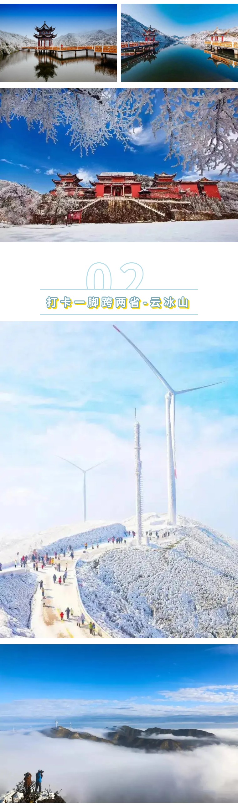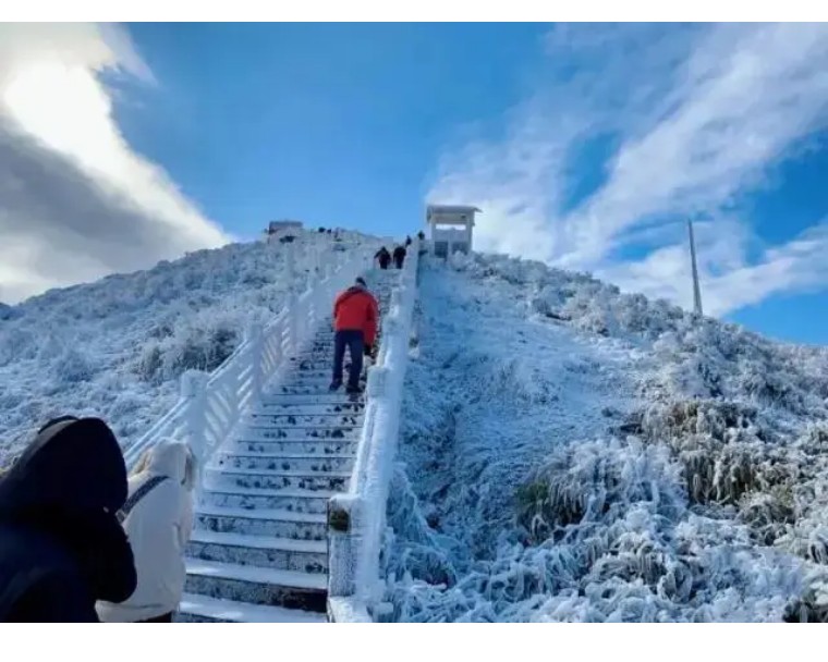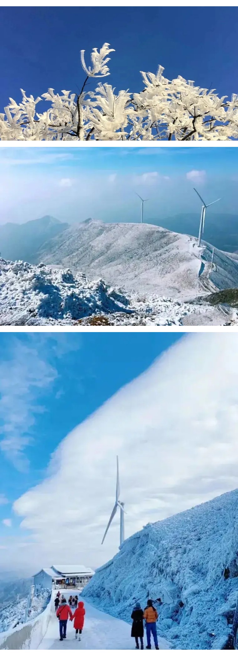 12:00 左右到达云冰山风景区,乘景区环保车前往南国雪乡之称的【云冰山景区】于湘粤交界的云冰山,以云海,冰雪奇观而得名,一览众山小的梦幻云海,奇特冰挂堪称一绝;每年的"雾凇+雪淞+雪景"奇观轮番上阵,素有南方"北国风光"的美誉(另外说明:如遇道路结冰等恶劣天气 ,景区为安全起见,云冰山中转车可能暂停且费用没的退,徒步上顶约3公里40分钟左右);